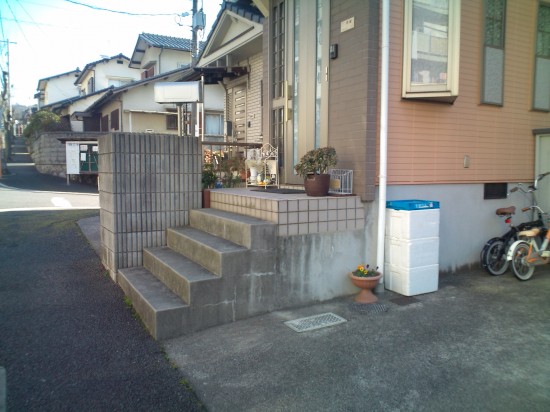 1、道路に対して急勾配の直階段で危険なので、危なくないように解消したい
