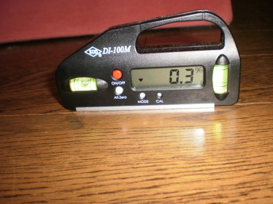↑ 部屋の床の傾きを調べています。0.6%以内であれば問題ありません。