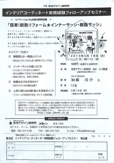 当研究所教育部では、過去の受講生のインテリアコーディネーターの皆様をメインに、実務経験をフォローするセミナーを毎月開催しております。