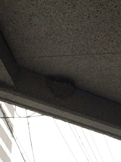 当研究所のビルの駐車場の天井にツバメの巣があることを発見。