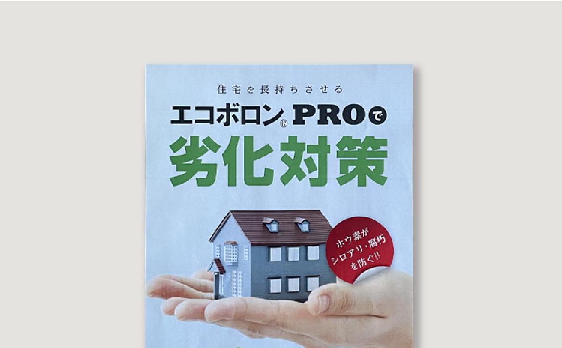 私たちはシロアリの対策として、人や環境にやさしい薬剤を使用しています。10年間のシロアリ被害に対する保証をします。