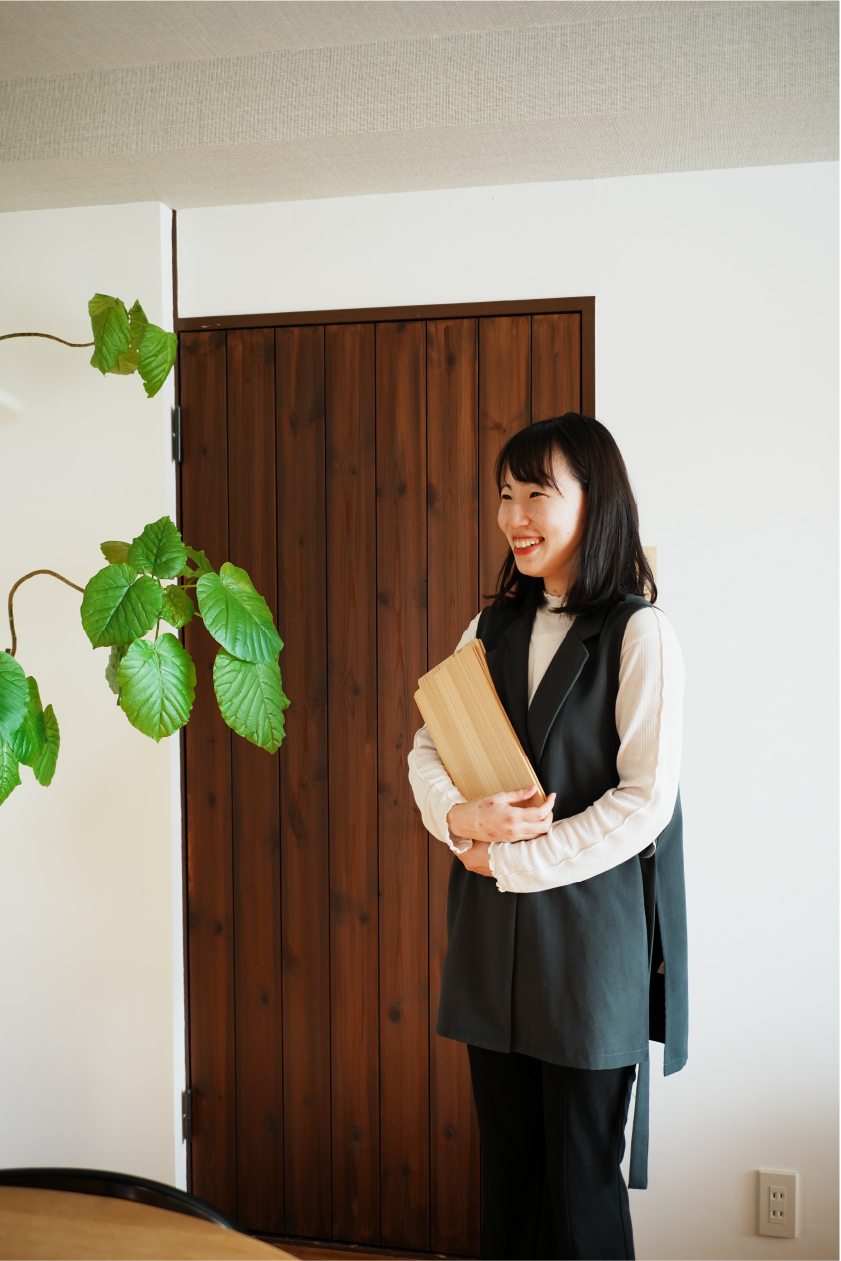 私は大学で芸術を学んでいました。その中でも特に印象的だったのが京都の大徳寺を見に行った時です。大徳寺の建築技術や周りの枯山水がすごく魅力的に感じ、建築という分野をもっと学びたいと思ったのがホルツバウハウスに入社したきっかけです。
