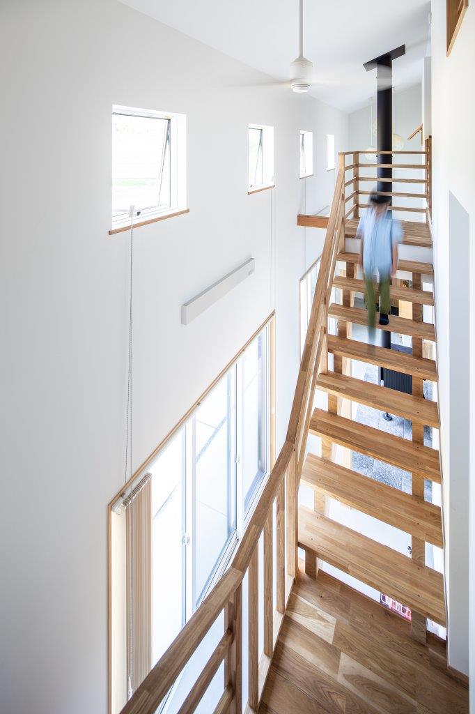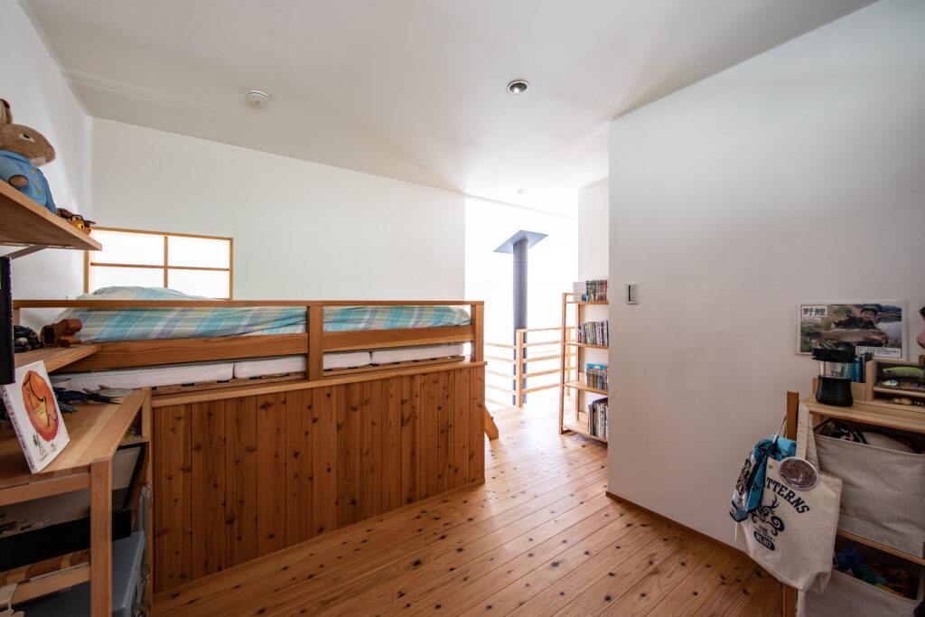 吹き抜けになっているため、薪ストーブや空調の空気が家中を循環します。