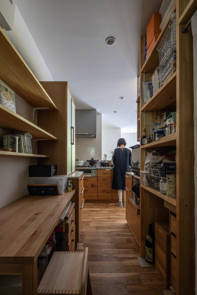 キッチンの背面は、パントリー兼奥さまの書斎スペース。
